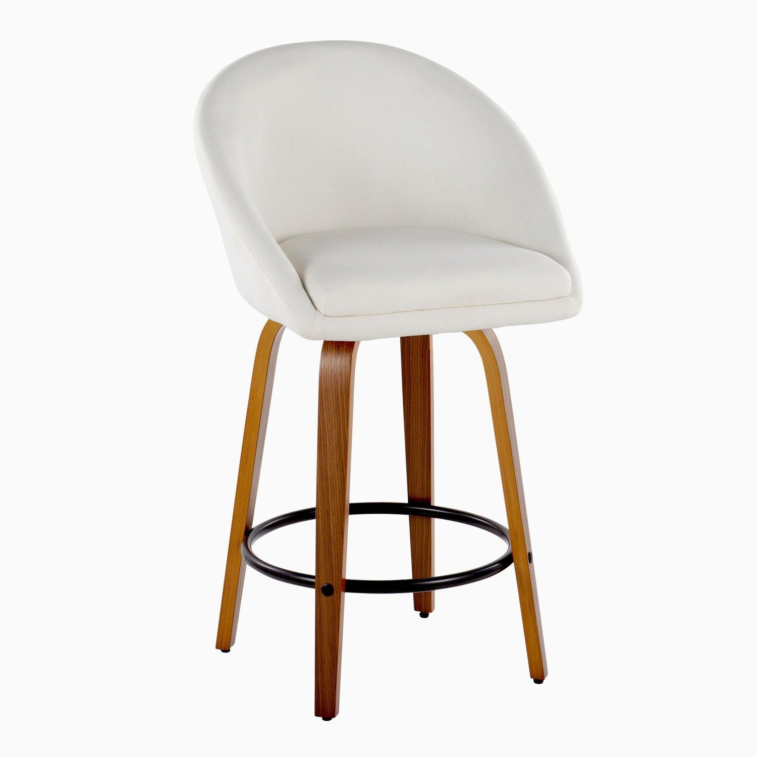 Matisse - 26" Highback Fixed-Height Counter Stool With Swivel And Round Black Metal Footrest (Set of 2) - Walnut Wood And Cream Fabric