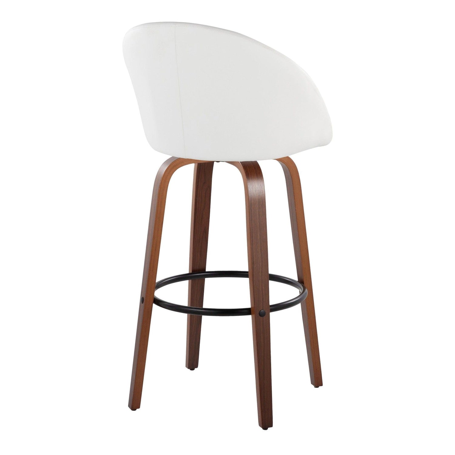 Matisse - 30" Highback Fixed-Height Barstool With Swivel And Round Black Metal Footrest (Set of 2) - Walnut Wood And White Faux Leather