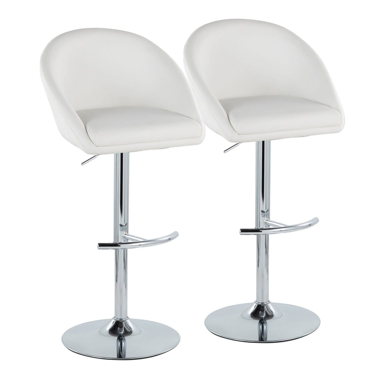 Matisse - Highback Adjustable Barstool With Rounded T Footrest (Set of 2) - Chrome Metal And White Faux Leather