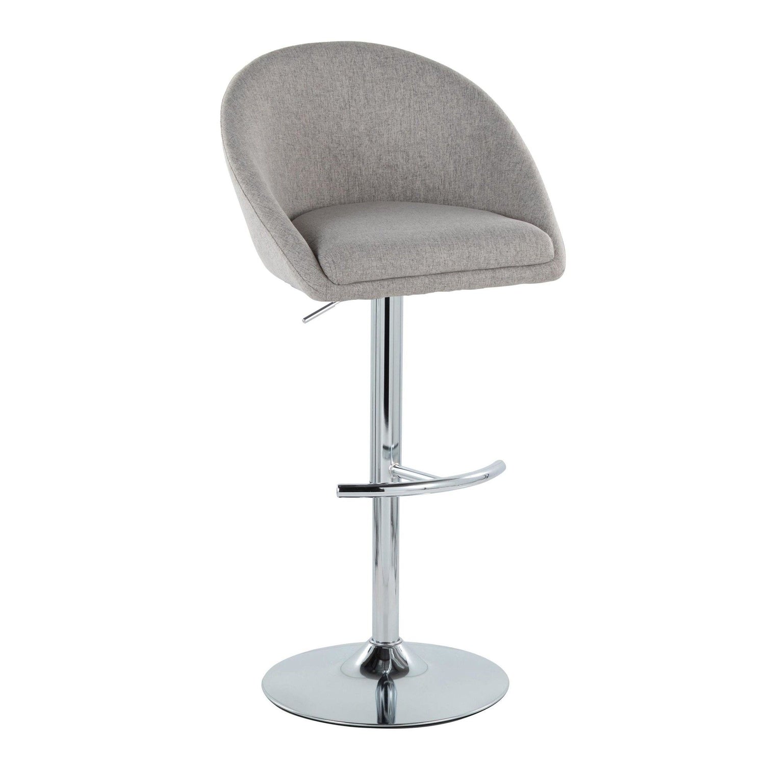 Matisse - Highback Adjustable Barstool With Rounded T Footrest (Set of 2) - Chrome Metal And Gray Fabric