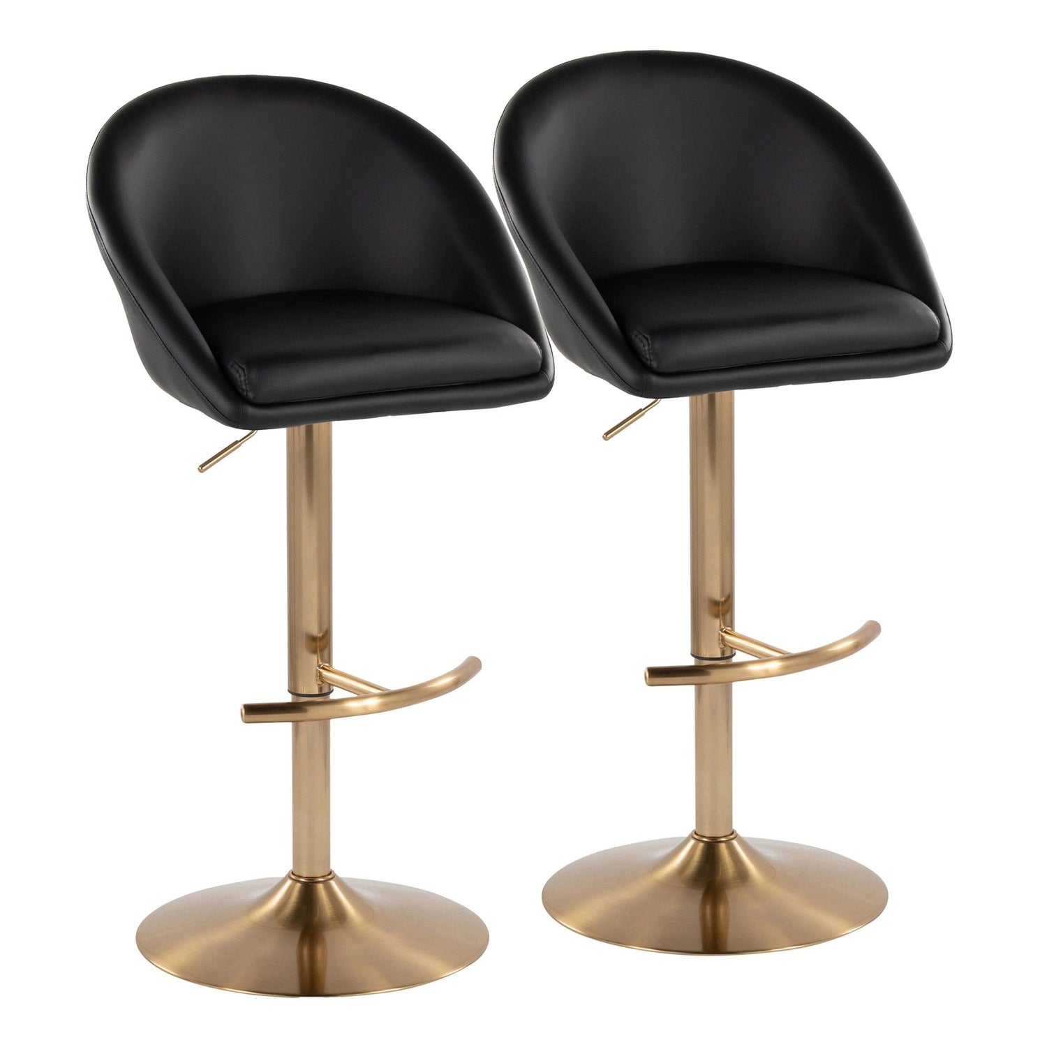Matisse - Highback Adjustable Barstool With Rounded T Footrest (Set of 2) - Gold Metal And Black Faux Leather