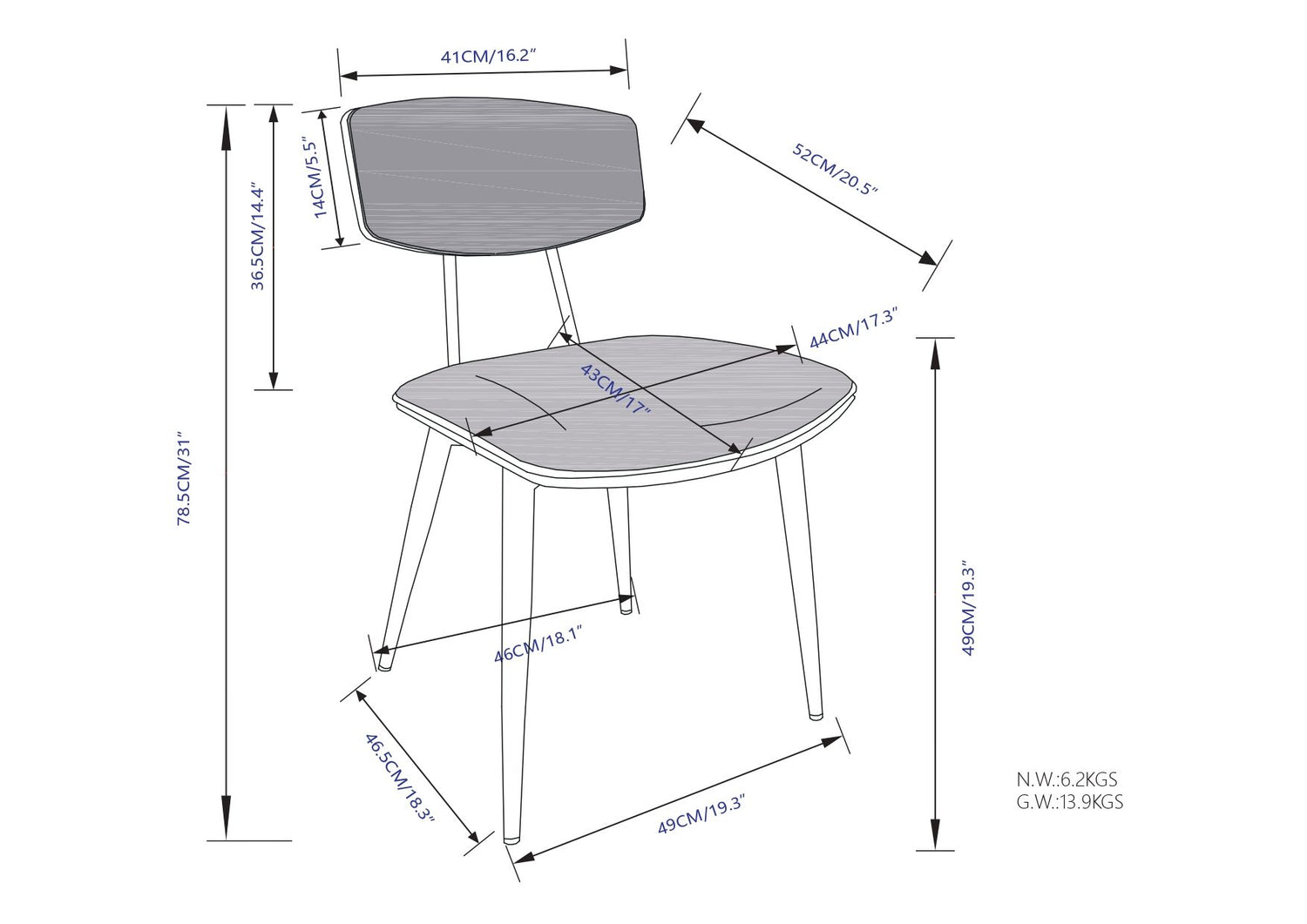 20.5"W x 19.3"D x 30.9"H - 13.1 lb