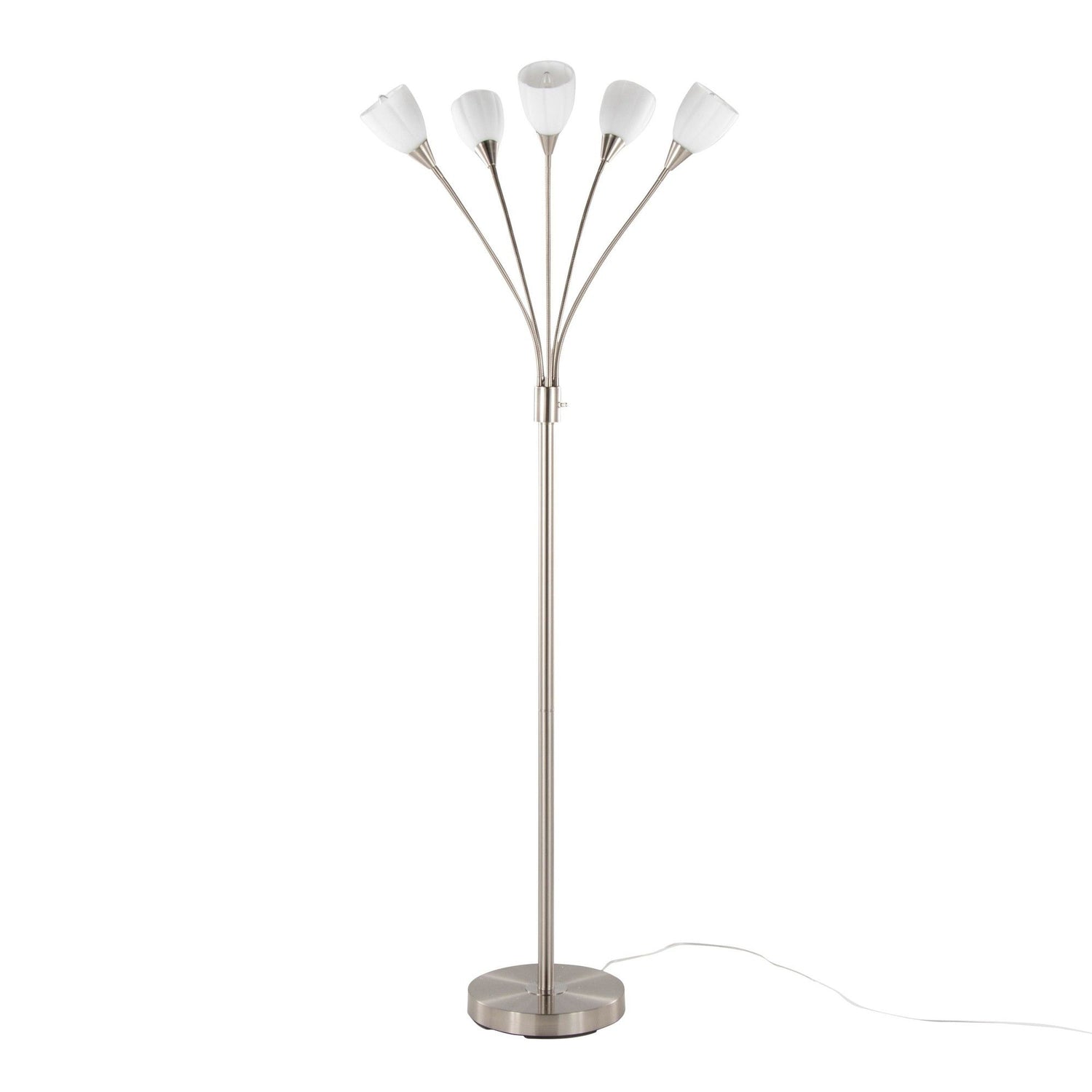 Medusa - Metal Floor Lamp 5 Arm - Stainless Steel, White Glass