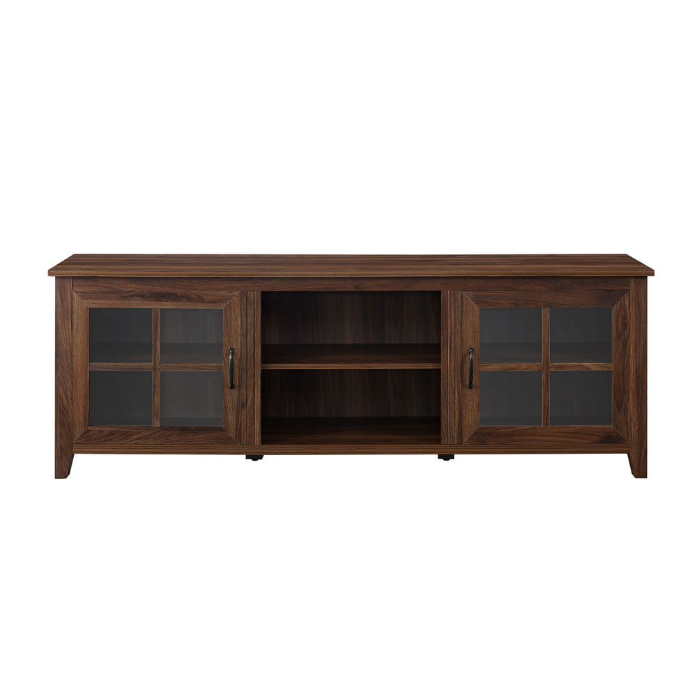 2 Door Glass Windowpane 70" TV Stand For 80" TVs - Dark Walnut