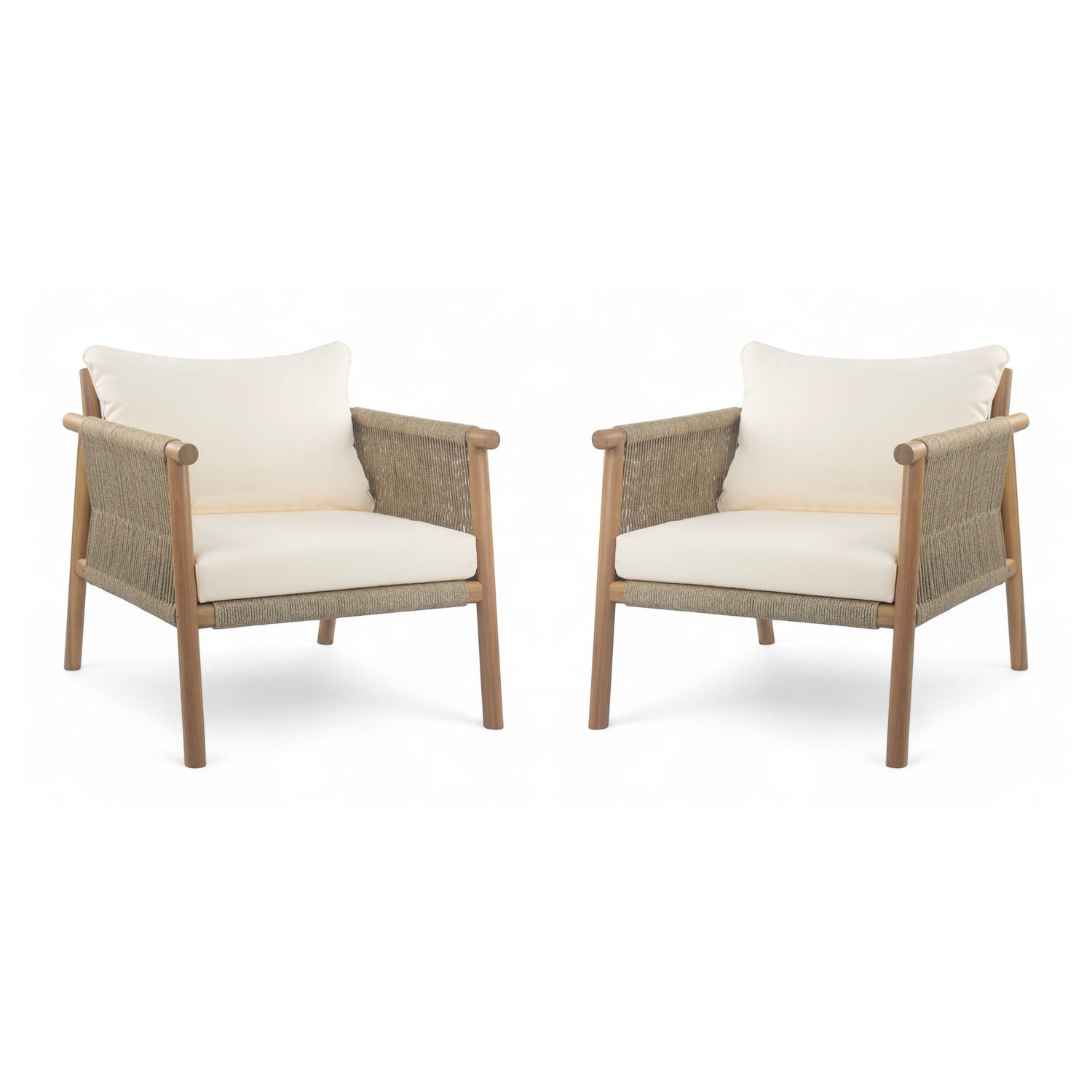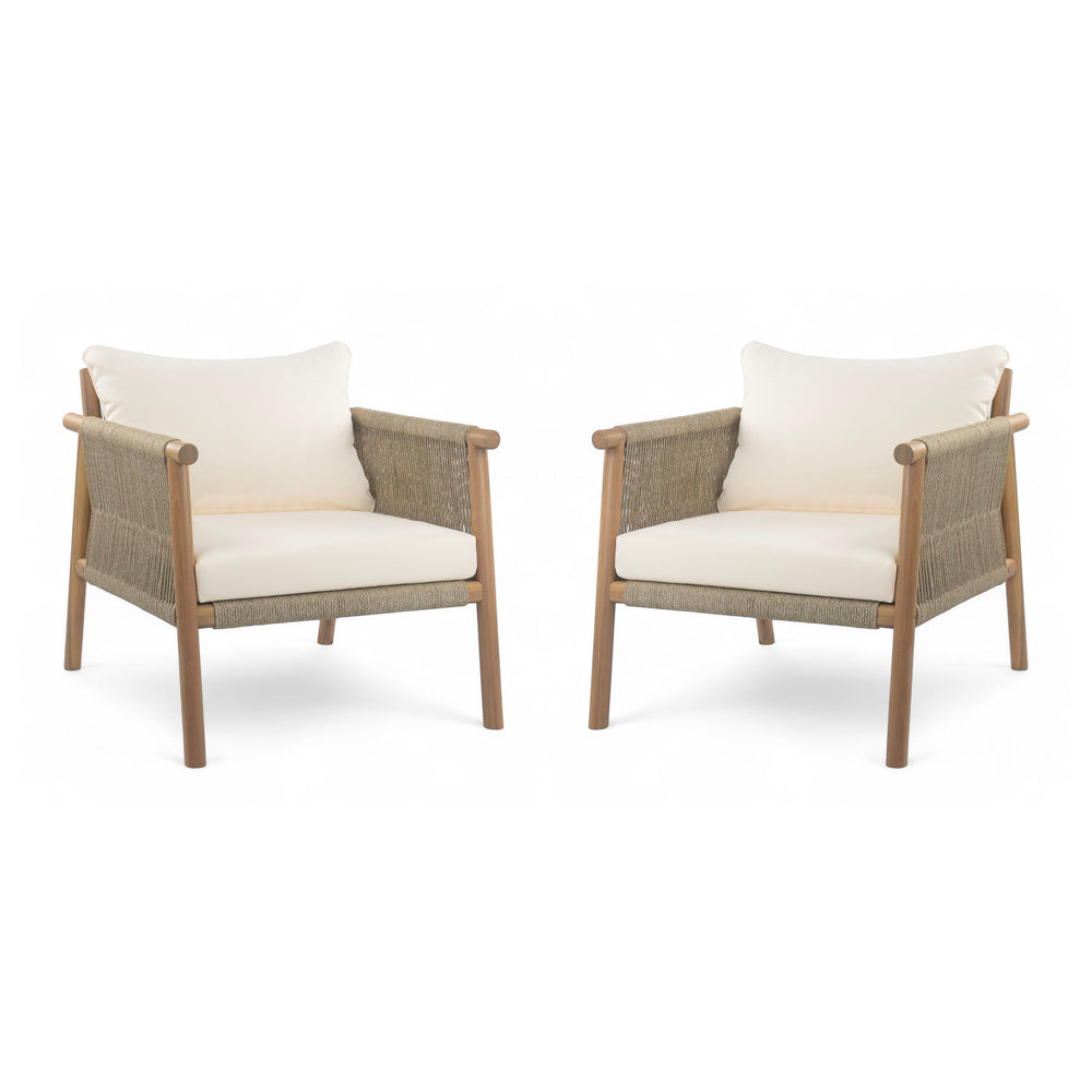 Modern Outdoor Woven Lounge Chair Set With Solid Wood Frame And Polyester Cushions - Teak