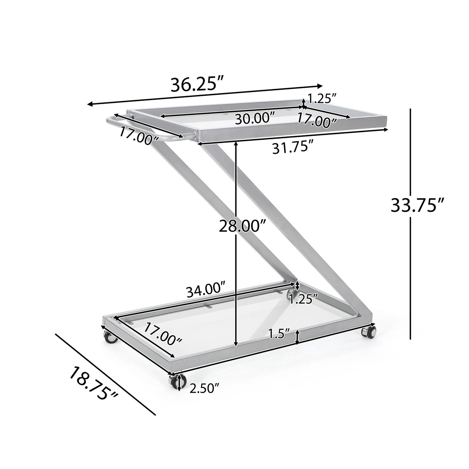 Modern Z Shaped Bar Cart With Tempered Glass Shelves - Silver