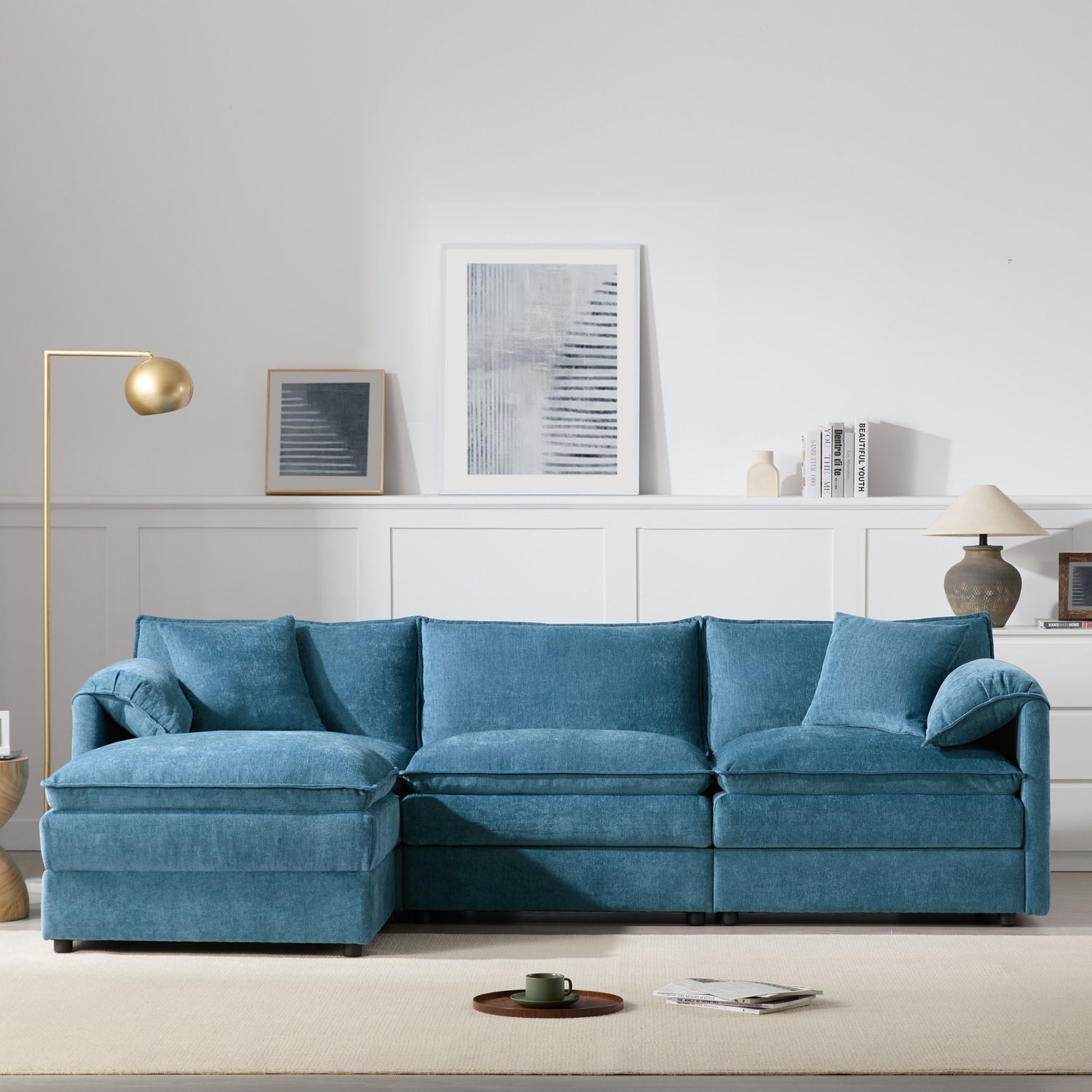 Modular Sectional With Deep And Wide Seat, L Shaped Cloud Couch Set With Double Cushions 4 Seat Sofa With Movable Ottoman Oversized - Blue
