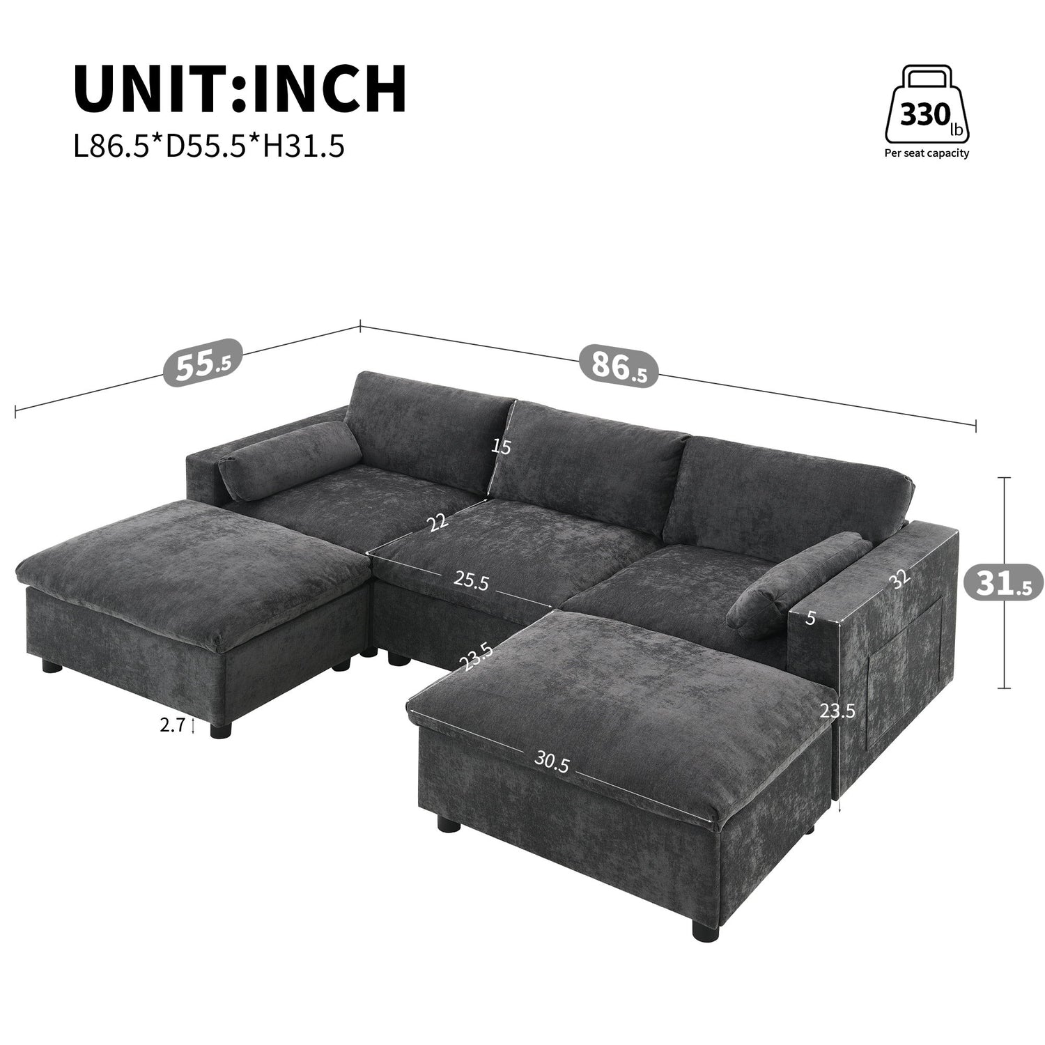 - Ample Storage Space: This sectional sofa comes equipped with two storage bags on either side, providing convenient storage for items such as remote controls and magazines. This feature helps maintain a tidy and organized living room environment.