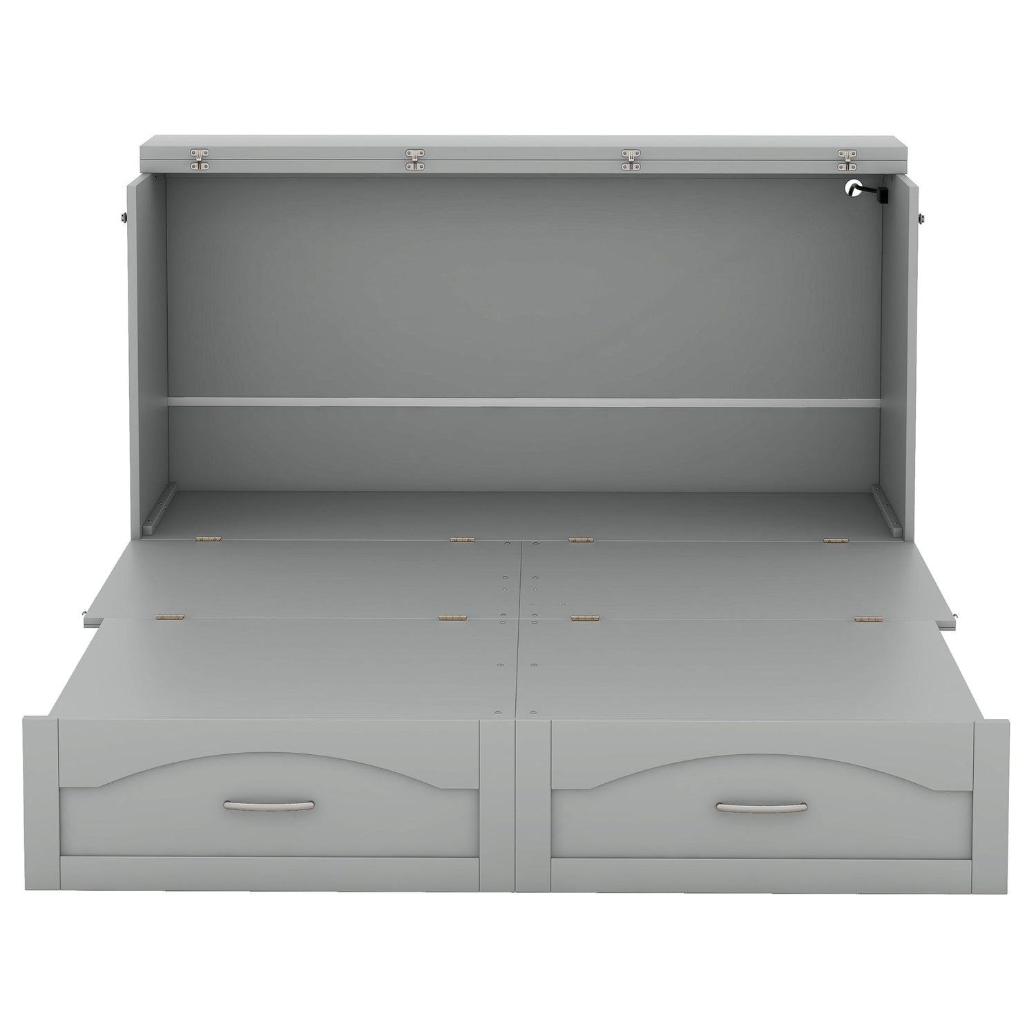 Queen Size Murphy Wall Bed With Drawer And A Set Of Sockets & USB Ports, Pulley Structure Design - Gray
