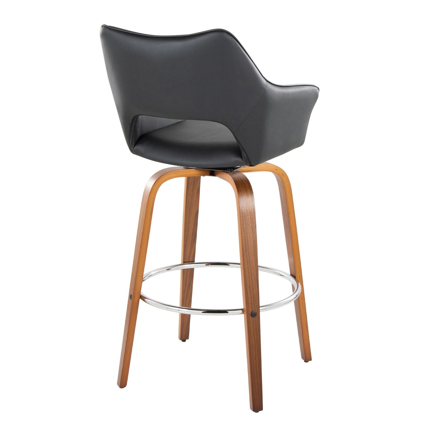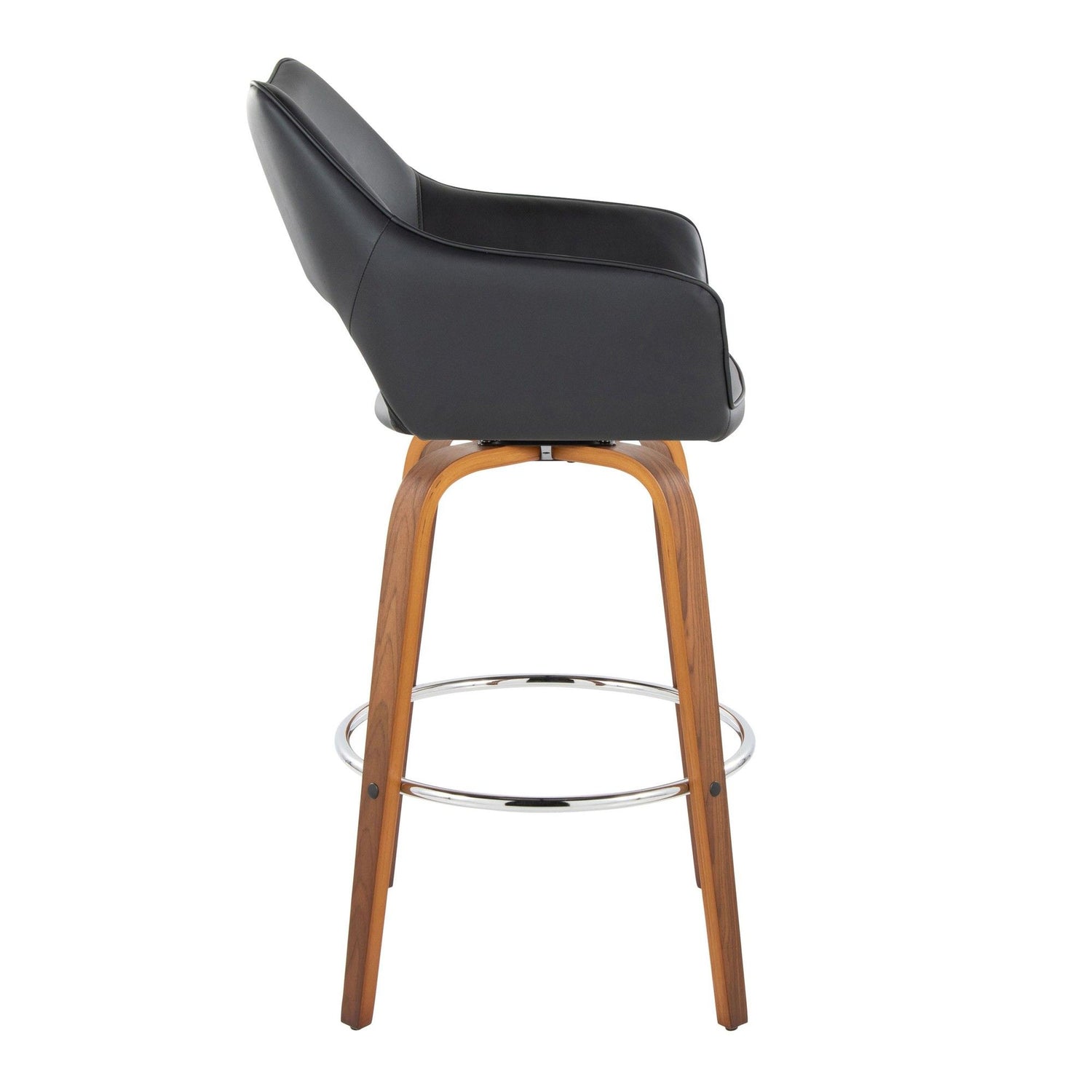 Mustang - Fixed-Height XL Barstool (Set of 2) - Walnut Wood, Black Faux Leather, Chrome Metal
