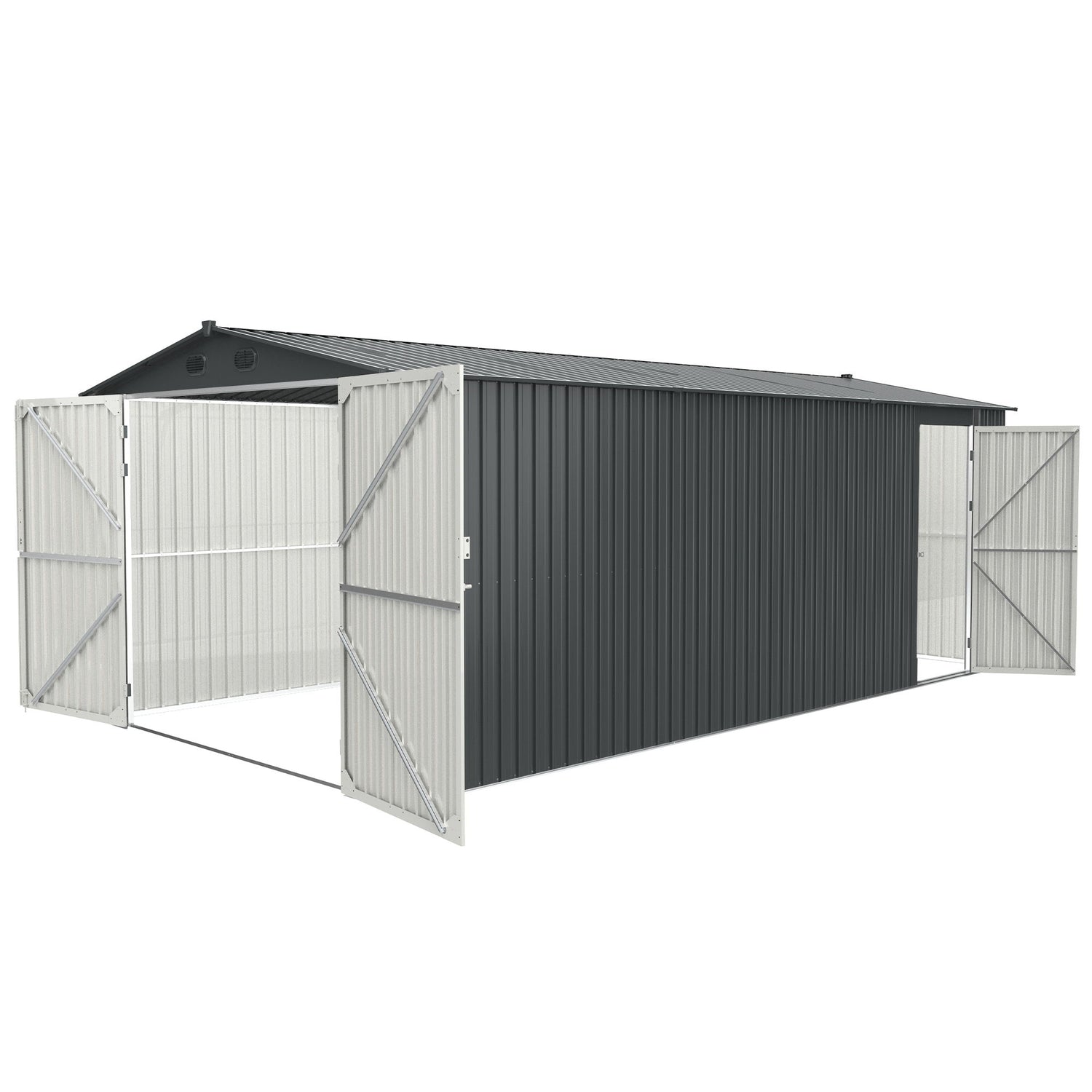 Outdoor Storage Shed, Metal Garden Shed Backyard Utility Tool House Building With 2 Door And 4 Vents For Car, Truck, Bike, Garbage Can, Tool, Lawnmower - Dark Gray