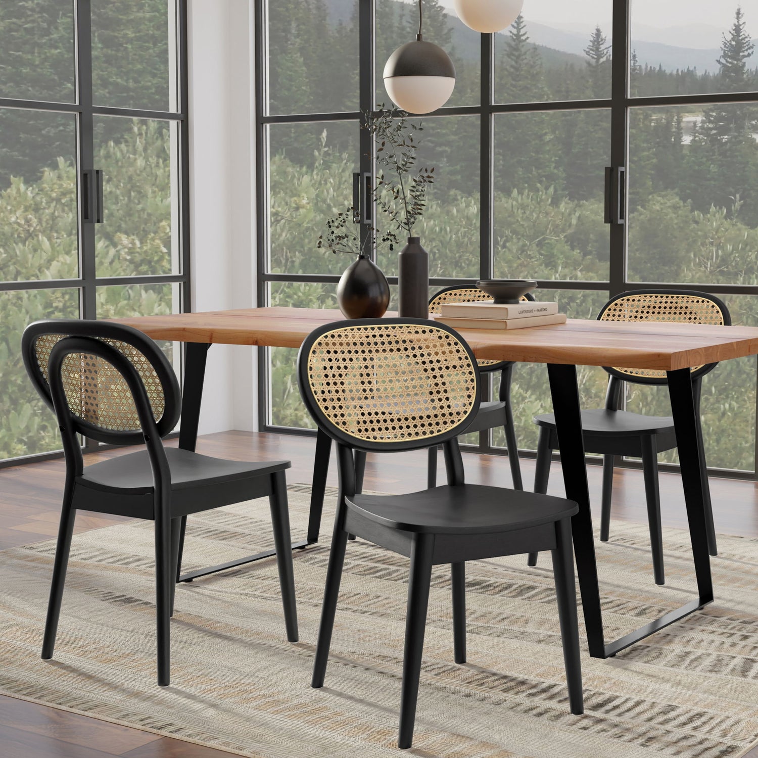 - Features a natural rattan cane backrest, blending classic design with breathable comfort.