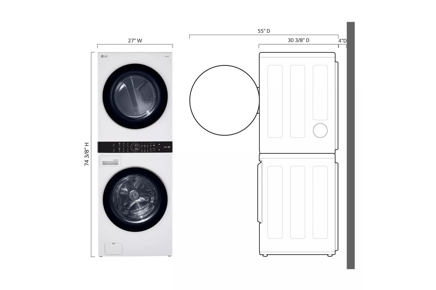 Single Unit Front Load LG WashTower(TM) with Center Control(TM) 4.5 cu. ft. Washer and 7.4 cu. ft. Electric Dryer