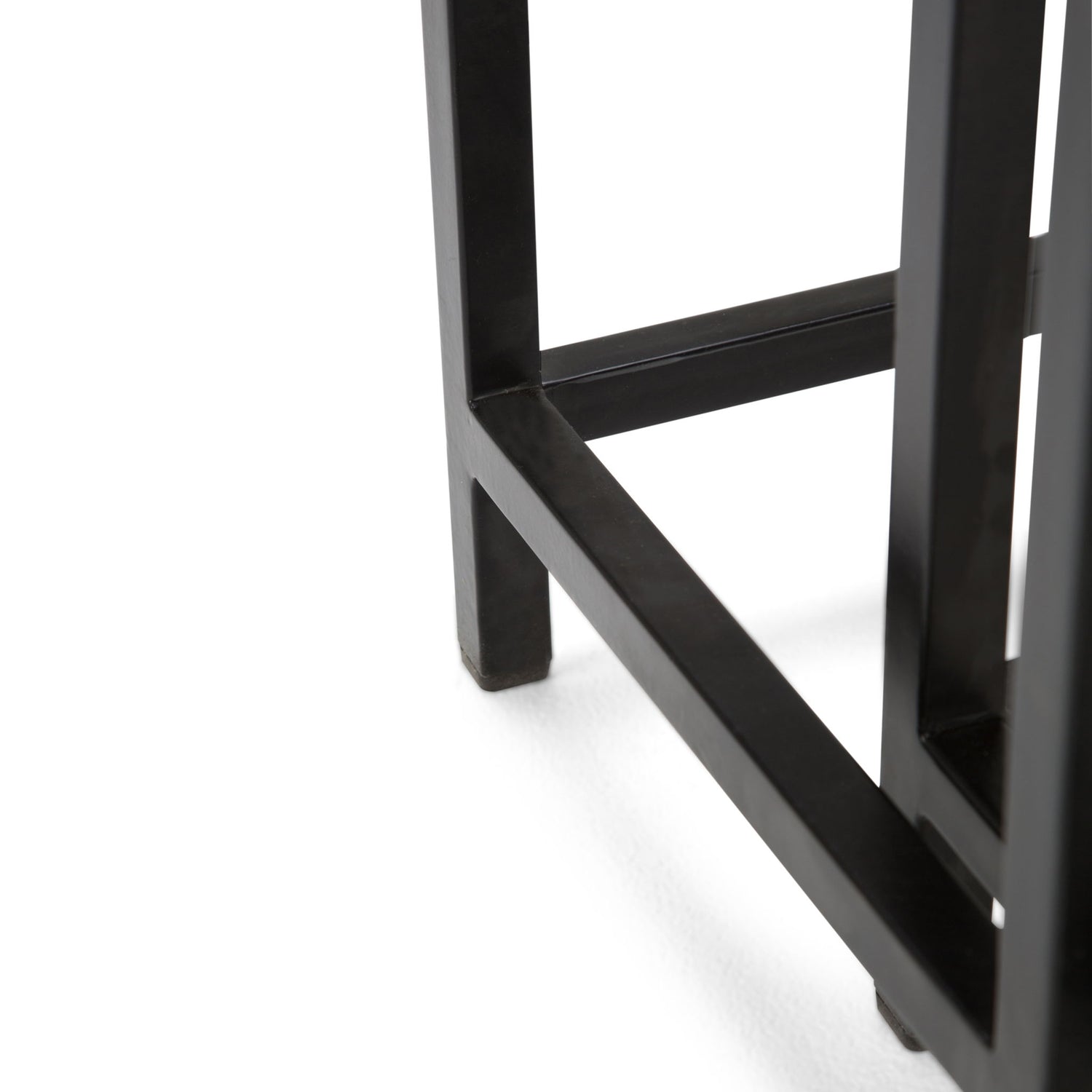 - Set includes: Two (2) Nesting Tables with black metal frame and legs