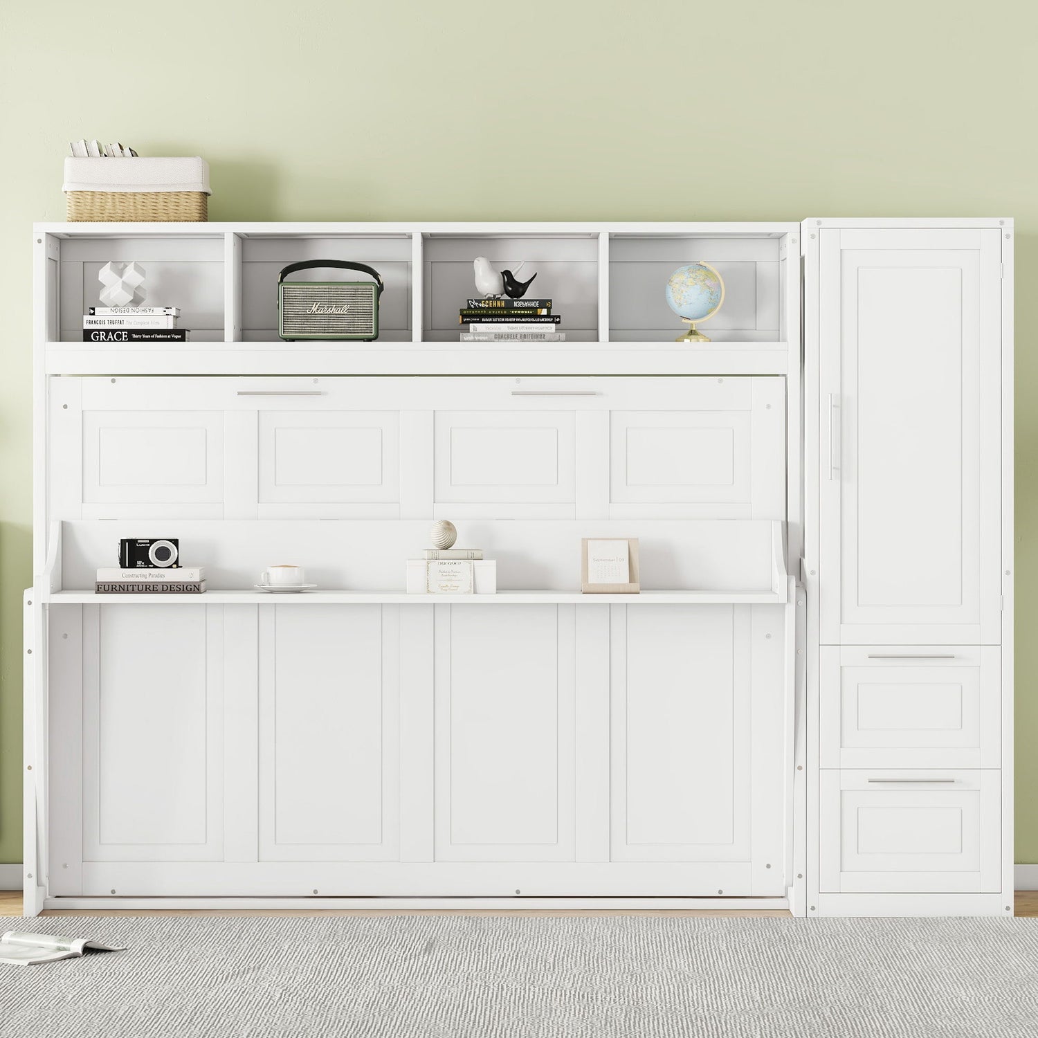 Full Size Murphy Wall Bed With Closet And Drawers - White