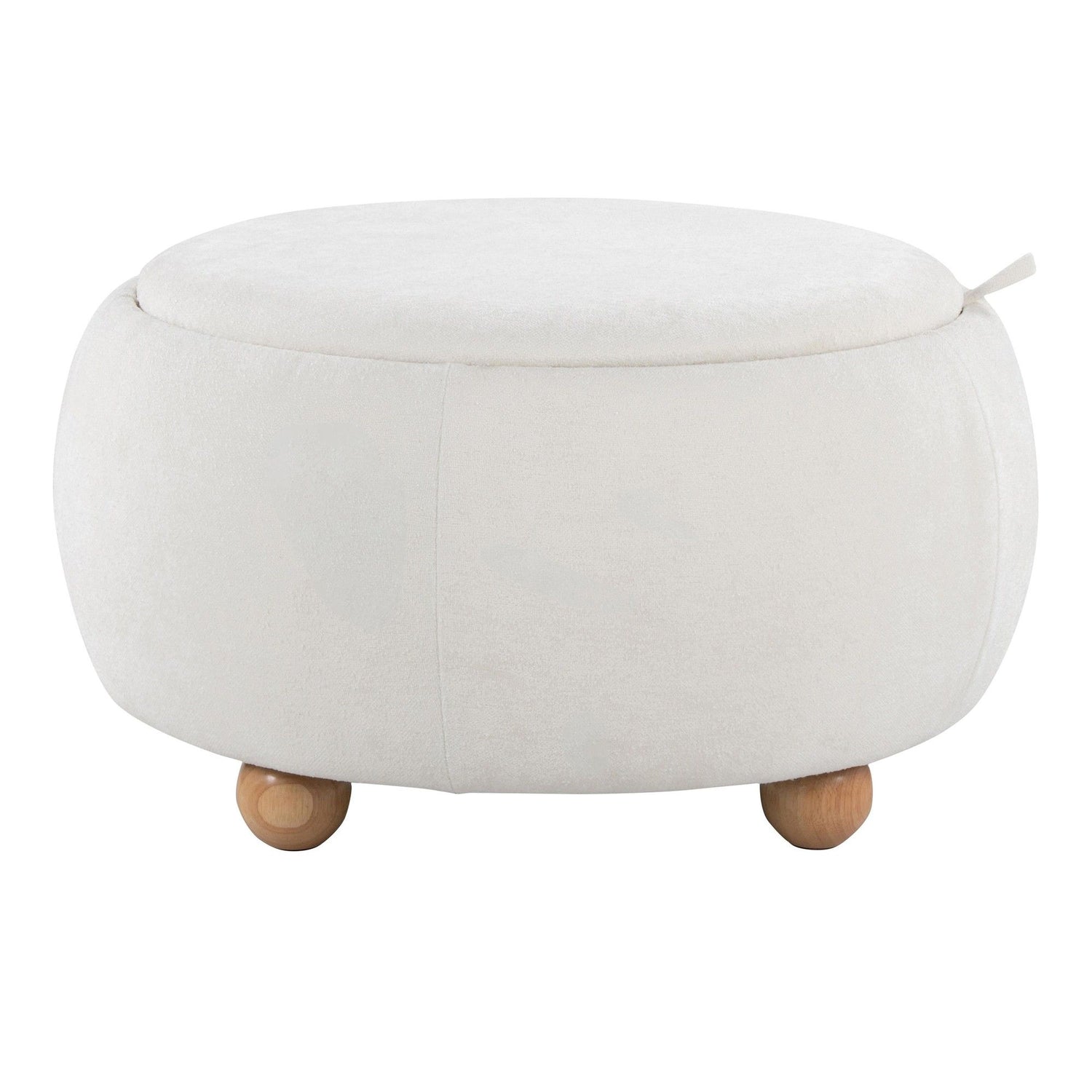 Tray - Pouf Storage Ottoman - Natural Wood And White Fabric