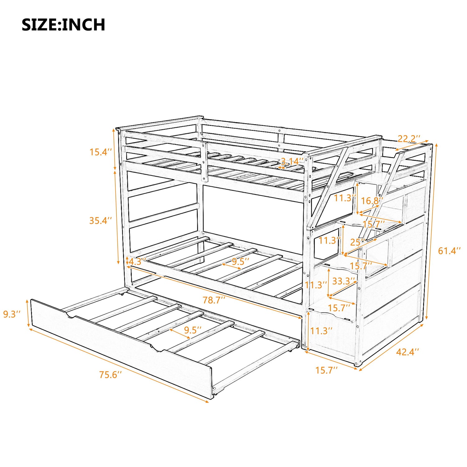 - Smart Space-Saving Solution: Maximizes space with a twin-over-twin design, featuring a pull-out trundle and three storage-integrated stairsperfect for guests and keeping essentials organized and easily accessible.