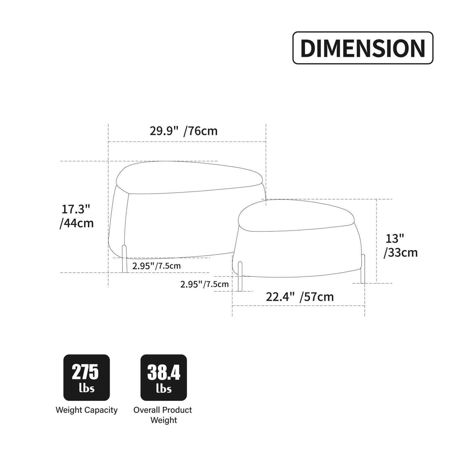 - Versatile Function: Includes a smaller ottoman hidden inside the larger one for flexible use.
