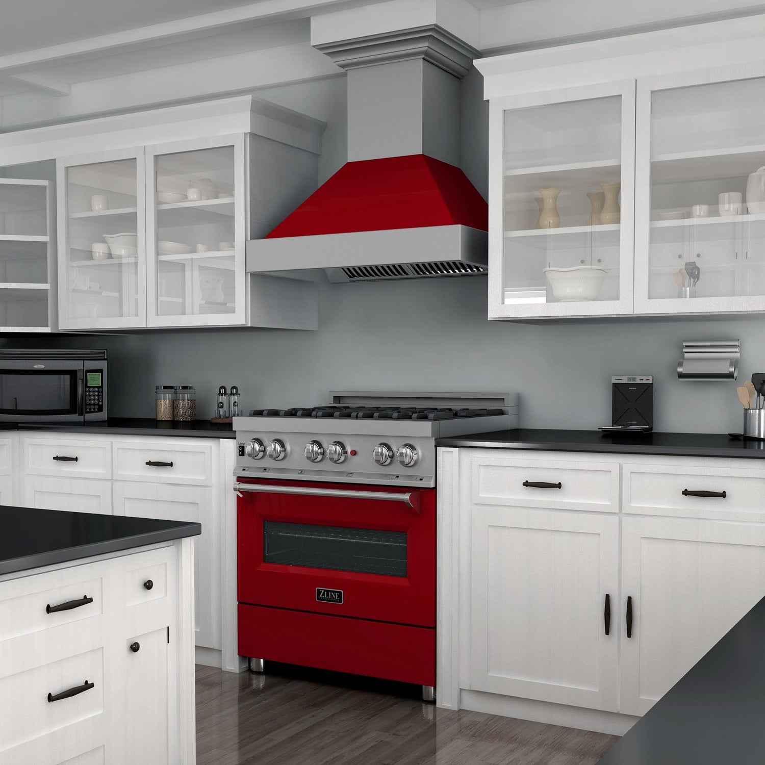 ZLINE 30 in. 4.0 cu. ft. Dual Fuel Range with Gas Stove and Electric Oven in All DuraSnow Stainless Steel with Color Door Options (RAS-SN-30) [Color: Red Matte]