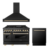 ZLINE 48" Autograph Edition Kitchen Package with Black Stainless Steel Dual Fuel Range, Range Hood and Dishwasher with Polished Gold Accents (3AKP-RABRHDWV48-G) - (3AKPRABRHDWV48G)